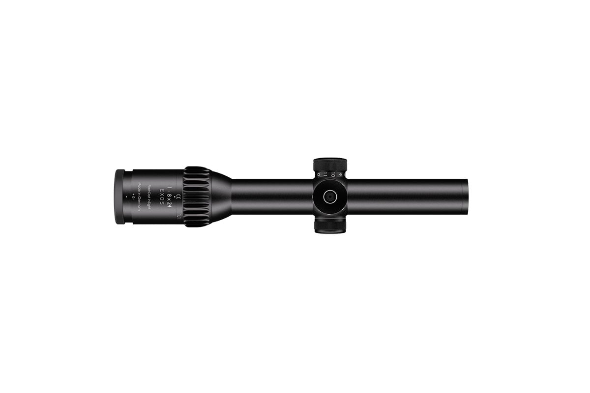 4060537066784 The 1‑8×24 Exos from Schmidt and Bender is a highly versatile, premium hunting riflescope designed for both rapid target acquisition and effective mid‑range shooting. With a magnification range of 1–8× and a 24 mm objective lens, it combines the speed of a red‑dot style sight with the precision of a full zoom optic. Key Features and Benefits True 1× magnification at the low end enables fast, intuitive shots with both eyes open and no magnification distortion. Higher magnification transitions up to 8×, offering flexibility across a wide range of distances. Wide field of view: approximately 35.3 m to 4.9 m at 100 m, providing excellent situational awareness at low magnification and fine detail at higher zoom. Generous eye relief of 90 mm for comfortable and safe mounting across different rifle platforms. High optical quality with an exit pupil of approximately 9.6–3.0 mm and light transmission over 90 %, ensuring bright, crisp imagery even in low light. Compact, durable build: 30 mm main tube, length approx. 293 mm, weight around 595 g. Adjustable illuminated reticle in certain versions for optimal visibility in varied lighting conditions. Technical Highlights Magnification: 1–8× Objective Lens Diameter: 24 mm Field of View: approx. 35.3–4.9 m @100 m Exit Pupil: approx. 9.6–3.0 mm Eye Relief: 90 mm Transmission: >90% Tube Diameter: 30 mm Length: approx. 293 mm Weight: approx. 595 g Ideal Use Case The 1‑8×24 Exos is perfect for hunters and shooters engaging fast-moving game or participating in driven hunts where immediate reaction is needed at short distance, while still providing enough zoom to clearly identify and shoot at greater ranges. Its blend of speed, clarity, and field-ready design makes it a versatile, one-scope solution.