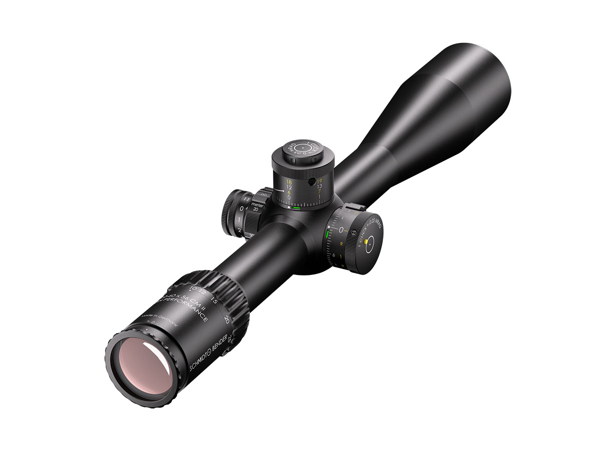 4060537066623 The 10–60×56 CM II High Performance (1.BE) is Schmidt and Bender’s flagship long‑range optic — engineered for extreme‑range competition, professional precision shooting and reconnaissance where uncompromising clarity, magnification and adjustment range are mandatory. Combining a massive 10–60× zoom with a large 56 mm objective, this scope delivers exceptional image resolution and brightness at extreme distances while retaining practical ergonomics for field use. Advanced optical coatings and a refined optical path yield light transmission well above 90%, producing high contrast and excellent target detail even at very high magnifications. The reticle in the first focal plane (FFP) ensures hold‑offs and subtensions remain accurate across the entire magnification range, making the scope ideal for real ranging and ballistic corrections on the fly. Mechanically the CM II High Performance is built around a 34 mm main tube with huge internal adjustment capacity. The elevation envelope exceeds 23 mrad (≈79 MOA) to cover extreme ballistic needs, and ultra‑fine turret options (as low as 0.1 mrad click value) allow precise, repeatable adjustments. The housing is engineered to operate in harsh environments and wide temperature ranges while maintaining mechanical integrity and point‑of‑impact reliability. Key Specifications Magnification: 10–60× Objective Lens Diameter: 56 mm Main Tube Diameter: 34 mm Elevation Adjustment Range: > 23 mrad (approx. 79 MOA) Typical Click Value: 0.1 mrad (configuration‑dependent) Eye Relief: ~90 mm Exit Pupil: approx. 5.6 mm → 1.0 mm across the zoom range Weight: ~940–999 g (configuration dependent) Length: ~442 mm Optical Transmission: > 90 % Reticle: First Focal Plane (FFP) Durability: Weatherproof, fogproof and built for professional field use
