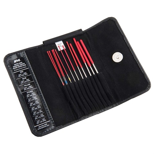 Pro Series Diamond Coated Micro File-setet innehåller 12 individuella filer i storlekar från .030” till .120”. Varje verktyg har en diamantabrasiv beläggning för exakt filning och hållbarhet.
