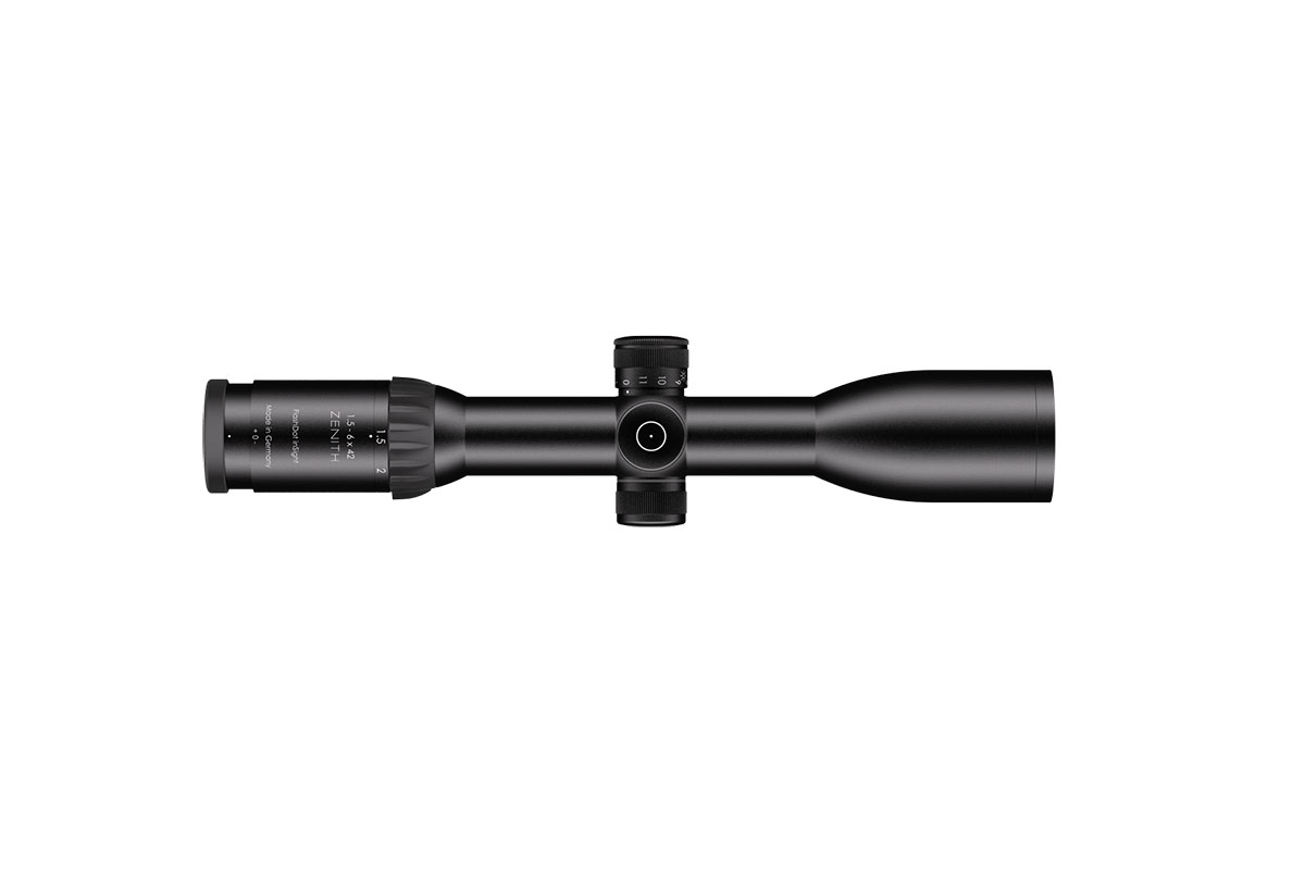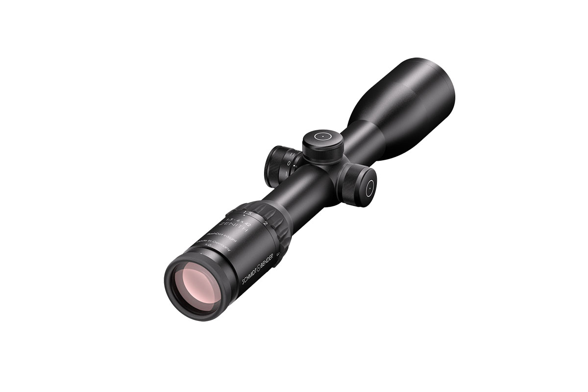 4060537017700 The 1.5-6x42 Zenith from Schmidt and Bender is a premium all-round riflescope engineered for versatility across driven hunts, stalking, and stand hunting — whether in daylight, twilight, or low-light conditions. Its wide field of view at the lowest magnification and crystal-clear optics allow for lightning-fast target acquisition in dynamic scenarios. With a magnification range of 1.5–6× and a 42 mm objective lens, the Zenith delivers a large exit pupil and an eye relief of 85 mm, ensuring rapid sight alignment and maximum comfort across shooting positions. Built around a robust 30 mm main tube, the scope guarantees durability and precision. The first focal plane (FFP) reticle maintains consistent scaling at all magnifications, while illuminated reticle options such as the FD7 provide excellent visibility even in challenging lighting. Its field of view spans 21.7 m to 6.7 m at 100 m, offering both situational awareness and precision for longer shots. Key Specifications: Magnification: 1.5–6× Objective Lens Diameter: 42 mm Main Tube Diameter: 30 mm Reticle: First Focal Plane (illuminated versions available) Eye Relief: 85 mm Field of View: 21.7–6.7 m @ 100 m Weight: approx. 600 g Handcrafted in Germany, the 1.5-6x42 Zenith combines traditional craftsmanship with modern optical engineering. It’s the perfect choice for hunters seeking reliability, precision, and versatility — a true benchmark in the premium hunting scope class.