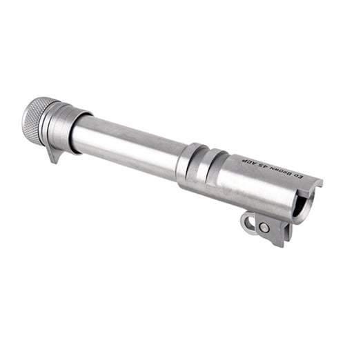 Denna 1911 45 ACP SUPPRESSOR READY THREADED BARREL från ED BROWN är identisk med den standard drop-in pipan, men är längre och gängad för användning med ljuddämpare. Gängstorleken är 0.578 x 28 tpi RH.