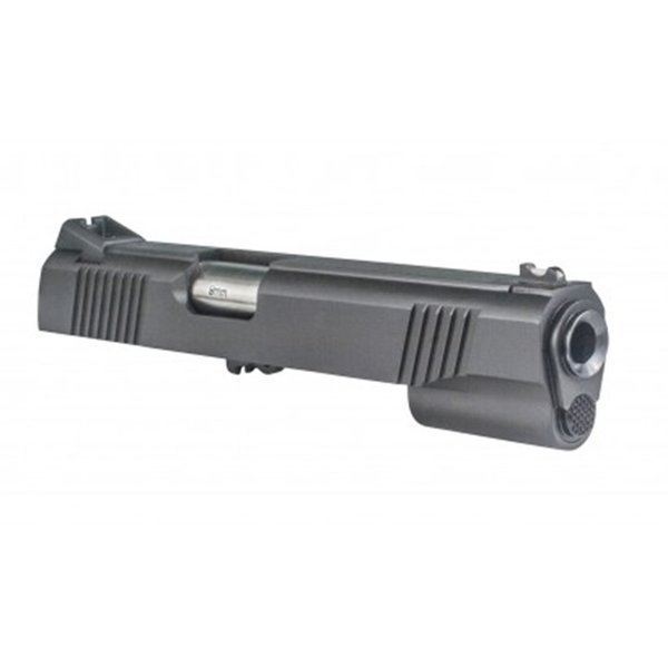 Denna 1911 Slide / Top End Assembly är en komplett enhet som är skräddarsydd för den 5-tums standard Government storleken, i Colt-stil. Den är kamrad för 9mm och kommer helt monterad med ett rekylsystem som har testats för funktionalitet.