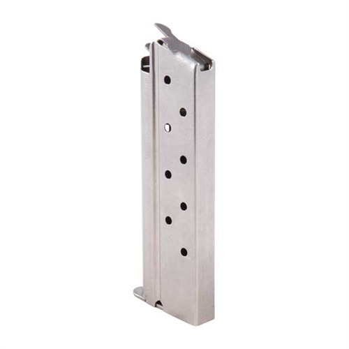 Robusta, högkvalitativa magasin tillverkade i USA i blästrad kolstål och rostfritt stål för 1911 Auto pistoler, som är kamrade i en mängd olika kalibrar. Välj mellan rund eller platt stålmatning, båda utformade för att ge positiv matning av sista patronen med alla typ av kulor, inklusive wadcutters. Den säkerhetsorange nylonmatningen är konkav för att hålla en extra patron.