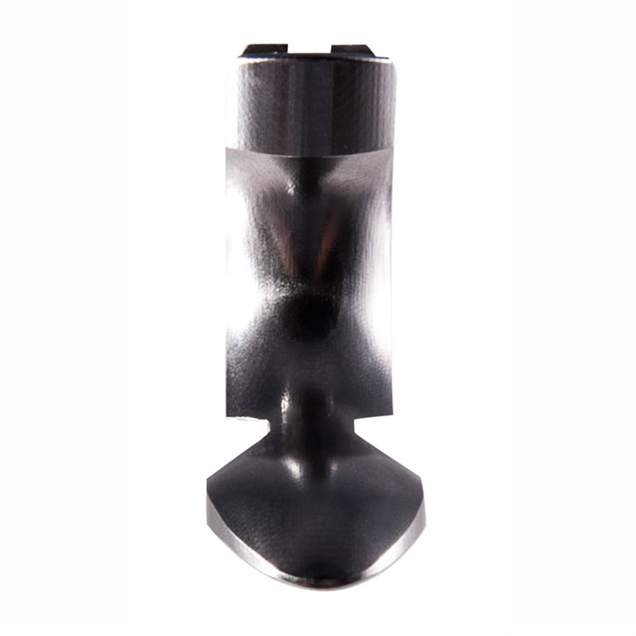 Harrison Design Extreme Service Beavertail Grip Safeties är CNC-bearbetade från stångmaterial, antingen rostfritt eller kolstål, och är konstruerade för att möjliggöra för hantverkaren att skapa den "hårfina" foginstallation som alla önskar. Måtten är kvar i överskott på kritiska ställen, såsom i bredden på den centrala luggen av beavertail som passar mellan ramens tänger, vilket eliminerar behovet av att svetsa mellan ramens tänger i de flesta fall. Sidmåttet på 'tail är också kvar i överskott för att möjliggöra att den passar flush med sidorna av ramen. Passningsradierna är maskinbearbetade under storlek med en radie på .240" för att ge tillräckligt med material för korrekt passning av beavertail till ramar som redan har maskinbearbetats för en .250" beavertail av fabriken och lämnats något lösare än önskat. Blockeringsarmen kommer med "Take Down"-notchen redan utskuren för dig.Utgått från Brownells