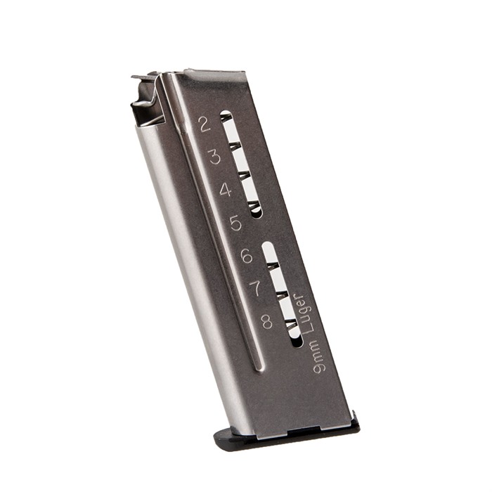 - Magasinets design lägger mindre spänning på fjädern än standardmagasin, vilket ökar fjäderlivslängden och gör det enkelt att sätta i ett helt laddat magasin med sliden stängd.