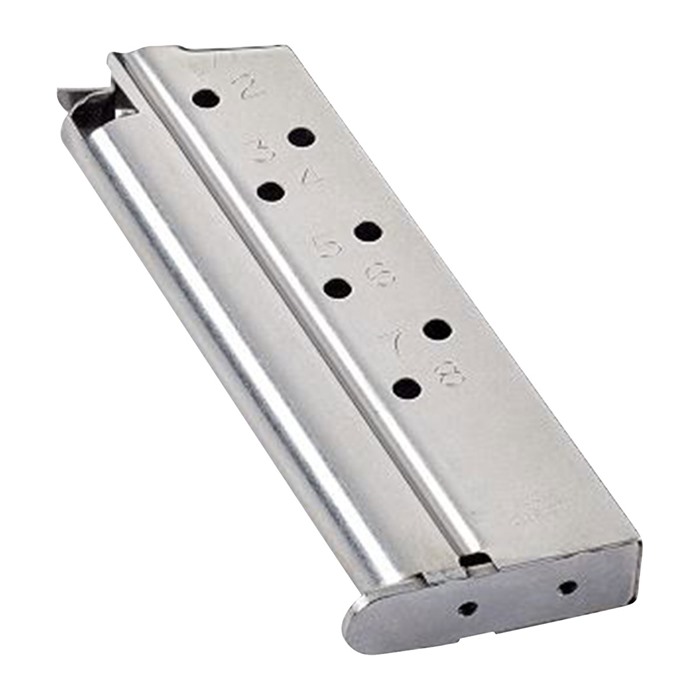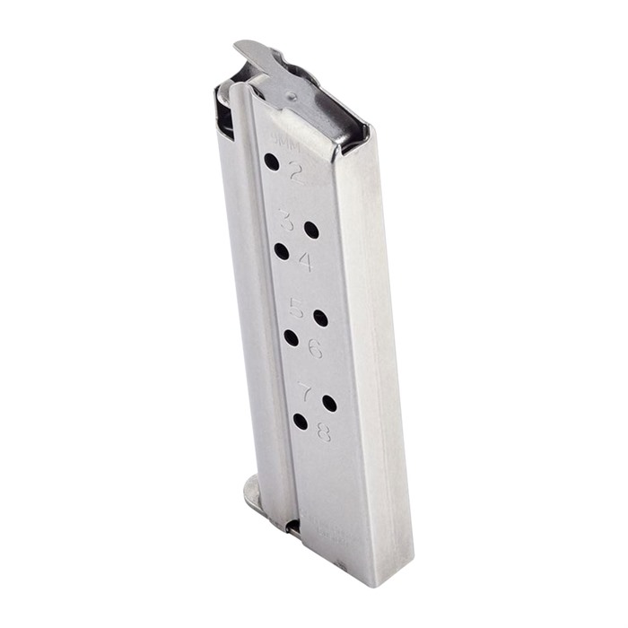 This CMC Products Match Grade magazine is based off of a traditional USGI-style fixed base magazine with improvements in follower design, feed lip geometry, and materials. Part of what leads these CMC magazine to have been given the Match Grade name is the fact that tolerances are held to +/- .001", which is more than 75% tighter than magazines made to typical military specifications. These have a stainless steel USGI style body with enhanced feed lips, a stainless steel follower, and a high tensile rocket wire spring. Numbered witness hole allow for a visual round count. 9mm Fits All Compact (Officer's Model) 1911 Handguns 8 Round Capacity The CMC Products Match Grade magazine has a flush fit for minimal bulk and easy concealment.