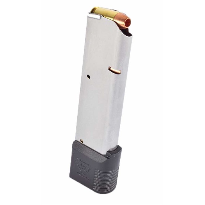 Wilson Combat has been renowned for its offering of high-quality 1911 magazines that enhance performance and reliability in a wide range of 1911 pistols on the market. With the introduction of the Wilson Combat 47 Series Full-Size 10-Round Magazine, 1911 owners now have an option that's even more improved than the original. The Wilson Combat 47 Series Full-Size 10-Round Magazine underwent a dramatic redesign, which works to improve the company's aftermarket offerings to 1911 enthusiasts. The biggest change is the addition of an extended base pad made from polymer, removing the need for an over-insertion tab found on the company's original magazines. Caliber: .45 ACP Magazine-body walls made from stainless steel measuring .027-inch thick Available in black or stainless-steel finish The 47 Series Full-Size 10-Round Magazine also incorporates a self-lubricating Nylon ETM follower and high-quality springs made from stainless steel to ensure that users receive reliable operation during a long service life.