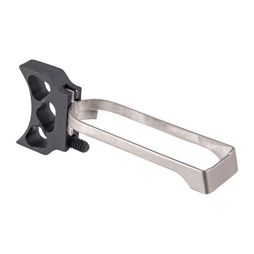 Fusion, Pro-Series, Match Trigger, K-HOLE (skelontonized), lång längd, silverfinish, aluminiumjusterbar lättviktsavtryckare för 1911-pistolen. Avtryckarbågen är också justerbar för att få en bra passform i din ram. Den levereras med en räfflad framsida och justerskruv. Viss anpassning kan vara nödvändig. Kompatibel med de flesta storlekar, märken och modeller av 1911-pistoler och kloner.