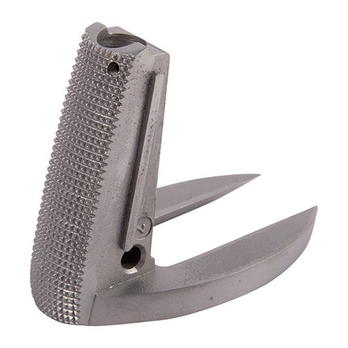 Drop-in, one-piece mag well and mainspring housing makes the mag well opening 100% bigger for easier magazine insertion and faster, “can’t-miss” mag changes. Increases grip length by ¼" for additional leverage and greater recoil control. For a no-slip, no-shift grip, mainspring housing features extra-defined, 20 lpi checkering, unless otherwise noted. Smooth models have uncheckered mainspring housing. Grooved model has full-length vertical grooves on the mainspring housing.