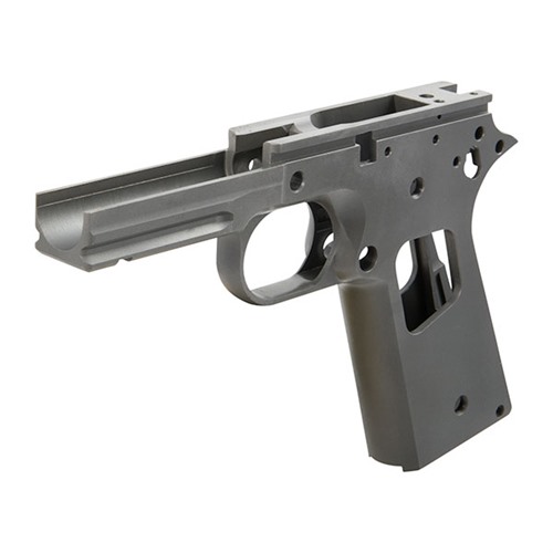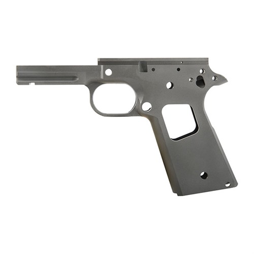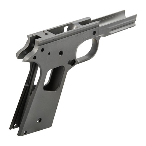 Build an outstanding, custom 1911 using one of these top-quality, single-stack receivers as the foundation. Models and features available for any custom project needs. Precision cast from carbon or stainless steel, and CNC machined to final dimensions. Heat treated to Rc 22-24 for optimum performance and durability. Oversize frame rails allow the gunsmith to achieve an exceptionally tight slide-to-frame fit for more consistent accuracy. Select models available with smooth front strap or with crisp CNC machine-cut checkering. Recon model has the strength and compactness that combat and action shooters require, with an integral accessory rail that accepts laser sights and tactical lights.