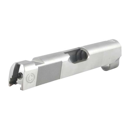 Djupa, framåtlutande bakre cocking serrationer förhindrar glidning vid racking, även med en blöt hand. Finns i 4340 kolstål (CS) och 416 rostfritt stål (SS) med .45 ACP, .40 S&W och 9mm breechfaces. Commander och Officers modeller finns endast i .45 ACP. Välj en slide utan siktsnitt (NC), eller mellan två förskurna dovetail-alternativ: en Novak Lo-Mount eller Bo-Mar BMCS bakre snitt, båda kopplade med en Novak framkant.
