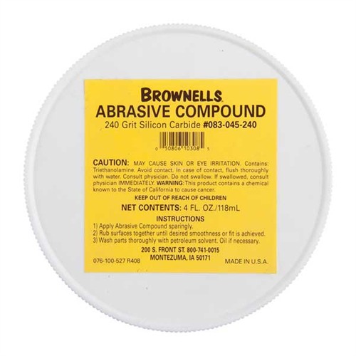 Tack för att du valt SILICON CARBIDE ABRASIVE COMPOUND från Brownells. Detta slipmedel är utformat för att säkerställa en hård passform mellan stålstycken. För att använda produkten på ett säkert och effektivt sätt, vänligen följ dessa säkerhetsinstruktioner noggrant.