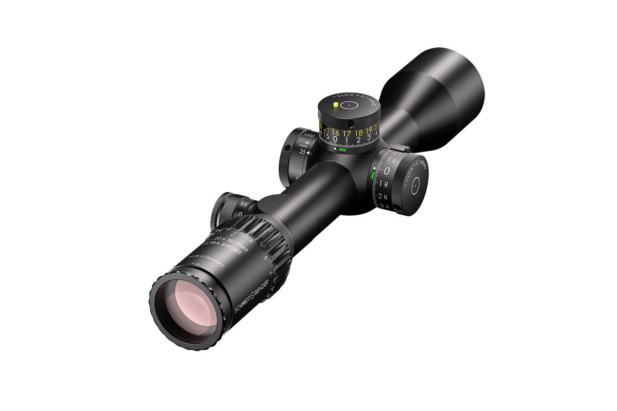 4060537040036 The 3‑20×50 PM II Ultra Short from Schmidt and Bender is a compact yet powerful riflescope engineered for high-performance engagements across medium to long distances. With its 3–20× magnification range and a 50 mm objective lens, it offers outstanding optical clarity and flexibility in a streamlined form factor. Constructed around a robust 34 mm main tube, it maintains a length of approximately 340 mm and weighs around 900 g, striking an excellent balance between size and performance—ideal for mounting on compact platforms without compromising optics. Its field of view spans roughly 13.0–2.1 m at 100 m, providing broad situational awareness at lower magnification and refined detail at the high end. The exit pupil ranges around 11.4–2.5 mm, and the eye relief is approximately 90 mm, supporting comfortable shooting in varied positions while maintaining strong light-gathering even as light fades. Advanced features include first focal plane (FFP) illuminated reticle options, side parallax adjustment (from approx. 25 m to infinity), and a low-profile elevation turret optimized for tactical precision. Key Specifications: Magnification: 3–20× Objective Lens Diameter: 50 mm Main Tube Diameter: 34 mm Field of View: approx. 13.0–2.1 m @100 m Exit Pupil: approx. 11.4–2.5 mm Eye Relief: approx. 90 mm Length: approx. 340 mm Weight: approx. 900 g With precision optics, compact build, and rugged mechanical design, the 3‑20×50 PM II Ultra Short is built for serious shooters who demand premium performance in a versatile package.