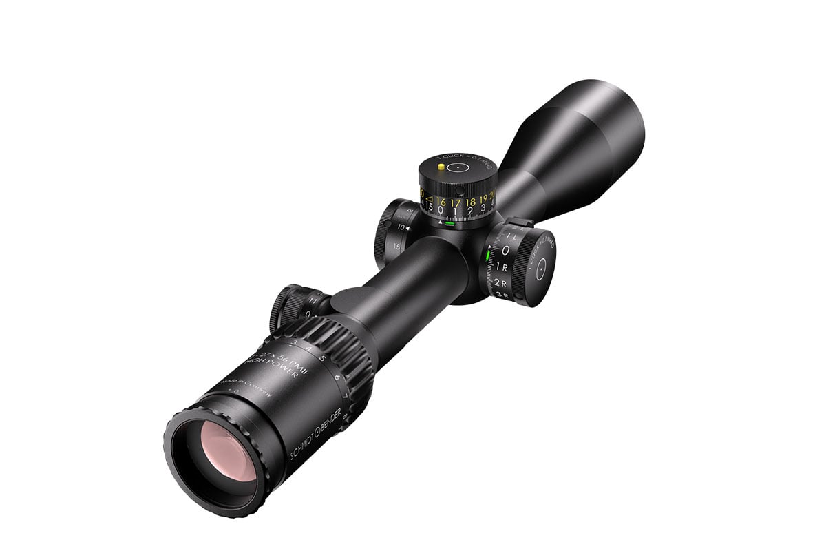 4060537043334 The 3‑27×56 PM II High Power from Schmidt and Bender is a premier tactical riflescope engineered for ultimate versatility—capable of precise performance from near‑range engagements all the way to extreme long‑distance targets. With an expansive 3–27× magnification range, this scope adapts effortlessly across calibres and mission profiles. Its 56 mm objective lens offers exceptional light gathering and clarity, enabling detailed target acquisition even at great distances. The field of view spans approximately 13.0–1.4 m at 100 m, while the exit pupil ranges around 8.7–2.1 mm. Generous eye relief of around 90 mm ensures comfortable alignment and a stable sight picture. Built on a rugged 34 mm main tube, the scope is constructed for demanding environments. The turret system accommodates ultra‑fine click values (e.g., ~0.1 mrad) and massive internal adjustment ranges for elevation and windage—making it suitable for long‑range engagement scenarios. Parallax adjustment commonly spans from around 10 m to infinity, giving flexibility across varied target distances. Key Specifications: Magnification: 3–27× Objective Lens Diameter: 56 mm Main Tube Diameter: 34 mm Field of View: approx. 13.0–1.4 m @100 m Exit Pupil: approx. 8.7–2.1 mm Eye Relief: approx. 90 mm Click Value: approx. 0.1 mrad (~0.5 cm @100 m) depending on configuration Parallax: from ~10 m to infinity Crafted with German precision, the 3‑27×56 PM II High Power is ideal for professionals, competition marksmen or hunters who demand the highest optical clarity, mechanical resilience and full versatility across a wide range of engagement distances.