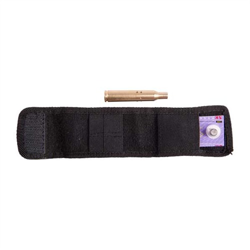 Detta boresighting-system fungerar med olika typer av sikten, inklusive scopes, holografiska rödpunktsikten och "iron" sights. Den hållbara, maskinbearbetade mässingshöljet ser ut som en patron, men innehåller hela lasersystemet och batterierna.