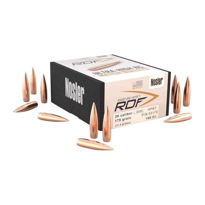 De viktigaste egenskaperna som bidrar till RDF:s enastående prestanda är NOSLER:s noggrant optimerade compound ogive och den långa, dragreducerande boat-tail, vilket gör handladdning enkelt och ger en otroligt strömlinjeformad formfaktor. RDF-kulor har också de minsta och mest konsekventa meplats av alla hollow point match bullet-linjer, vilket sparar tid då du slipper punkt- eller trimma spetsarna.