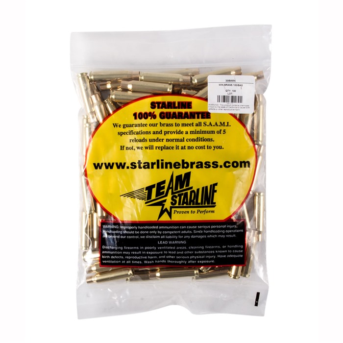 - Se till att alla produkter som används tillsammans med Starline .308 Winchester hylsor är säkra och i gott skick.