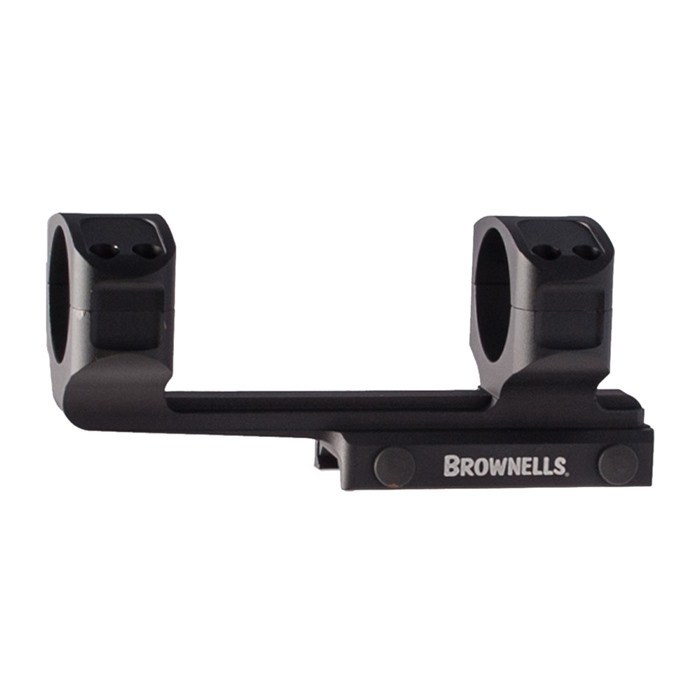 The Brownells AR-15 Cantilever Scope Mount is a true one-piece scope mounting solution for your AR-type "Modern Sporting Rifle." It positions the scope forward to give you plenty of eye relief, while it elevates the scope high enough for a comfortable head position and plenty of clearance for the objective bell. Machined from a solid billet of 6061 T6 aluminum, our AR-15 Cantilever Scope Mount is lightweight, strong, and rigid. A pair of hardened steel 1/2" hex nuts provide tremendous locking force to ensure your mount - and the scope attached to it - stays in place. Remove the mount/scope unit from the rifle and reinstall it with little-to-no shift in the scope’s zero. Positions centerline of optic 1.4" above receiver - ideal for comfortable head position Fits scopes with 30mm tubes Attaches to standard Picatinny receiver rail slots Weighs only 7.5 oz. Proudly Made in the U.S.A. A Brownells AR-15 Cantilever Scope Mount gives any 30mm scope you choose to mount on your rifle a solid, stable, secure platform that helps you enjoy the best performance from both rifle and optic.
