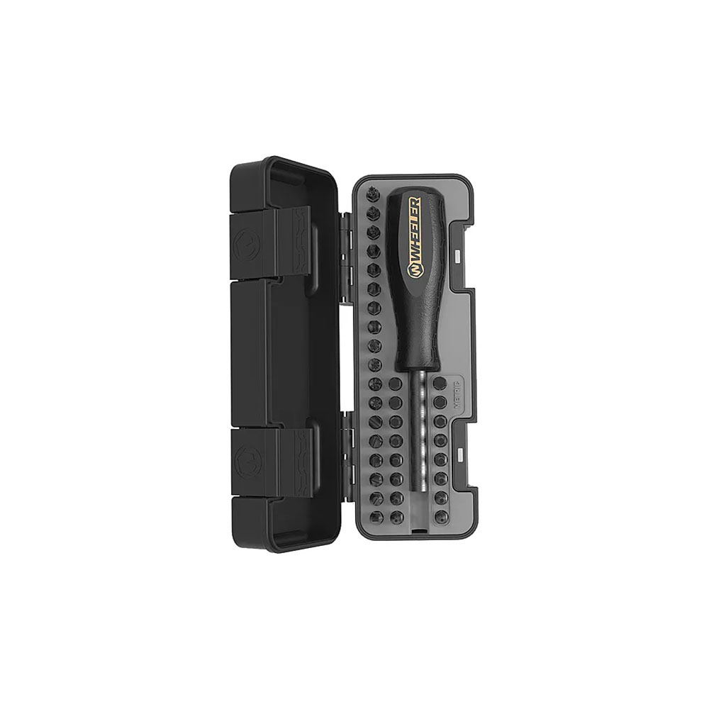 Wheeler 36-delars Spacesaver Skruvmejselsats erbjuder en praktisk blandning av SAE och metriska hex-, Torx-, Phillips- och flatbits, perfekt för vanliga hushållsuppgifter.
