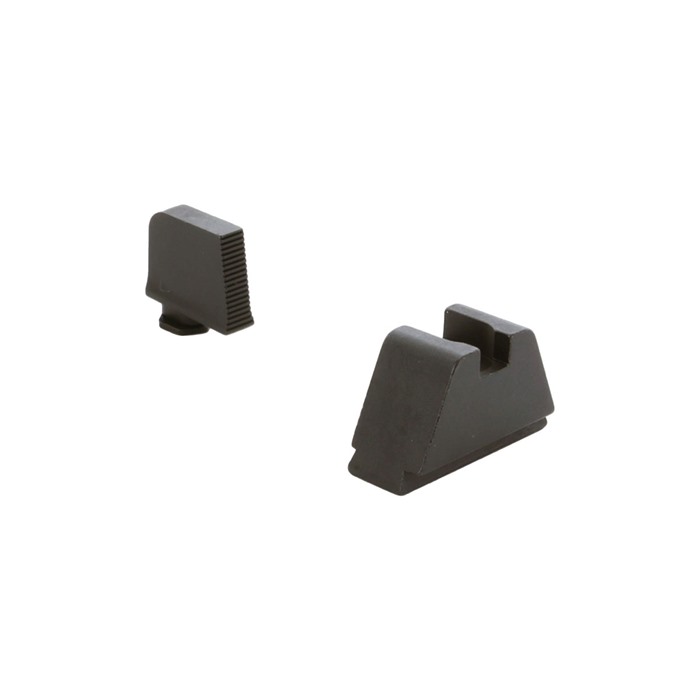 AMERIGLO® Optic Compatible sets provide a precise, elevated co-witness sight picture for slide-mounted red dot optics and serve as reliable back-up sights. These 3XL height sights from Ameriglo are optimized for the Glock Gen4/5 MOS Slide for use with Holosun 407C/507C/508T, Trijicon, RMR®/RMR HD®, RCR®/SRO®, EOTech EFLX optics. These sights will allow for use through the optic window. SPECS Fits Make: Glock® Fits Model: All Glock MOS Models Size: 3XL Fits MOS Slide: Yes Rear Blade Height: 0.371 in. (9.42mm) Overall Rear Height: 0.451 in. (11.46mm) SIZE SPECS 1L: Front Height: .220” / Rear Height: .295” 2L: Front Height: .240” / Rear Height .315” 5L: Front Height: .300” / Rear Height: .375” XL: Front Height: .315” / Rear Height: .394” 2XL: Front Height: .350” / Rear Height: .429” 3XL: Front Height: .365” / Rear Height: .451” 5XL: Front Height: .407” / Rear Height: .507”