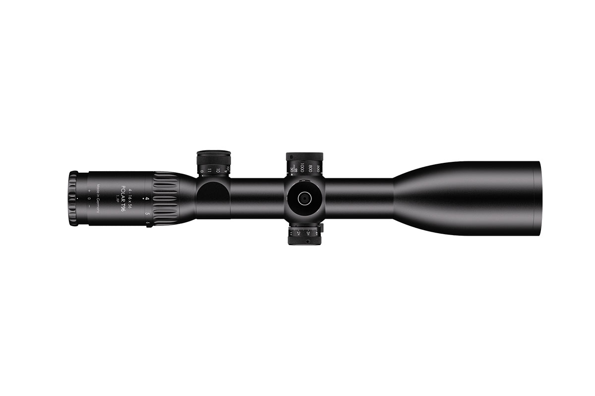 4060537066876 The 4-16x56 Polar T96 delivers uncompromising performance even in the fading light of day. With up to 16× magnification, it excels in both long-range hunting and precision sport shooting, while its exceptional light transmission of 96 % ensures clear visibility and razor-sharp detail when it matters most. Equipped with a first focal plane (FFP) reticle, the scope maintains a consistent scale at any magnification. Versions with parallax adjustment either fixed at 100 m or adjustable from 30 m provide maximum flexibility for a wide range of applications — from hunting to target shooting. The Posicon CT turret system offers clear, reliable click feedback and long-term durability, while an optional ballistic turret (ASV) allows for precise, customized ballistic compensation for advanced users. Key Specifications: Magnification: 4–16× Objective Lens Diameter: 56 mm Main Tube Diameter: 34 mm Length: 386 mm Weight: 810 g Click Value: 1 cm / 100 m Handcrafted in Germany with meticulous precision, the 4-16x56 Polar T96 stands as a benchmark for high-performance optics. Designed for demanding marksmen and hunters, it guarantees absolute reliability, exceptional clarity, and peak optical performance — from dawn’s first light to dusk’s final shot.