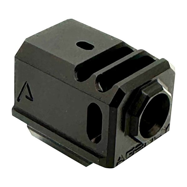 Vill du få lite mer kontroll över dina 9mm Glock-handkanoner? Vill du ha snabbare uppföljningsskott? Att lägga till en Agency Arms 417 Kompensator till dina Glock Gen 3 eller 4-handkanoner gör det möjligt för ägare att göra mer med sina vapen, tack vare en unik design. Maskinbearbetad av 7075 aluminium, passar Agency Arms 417 Kompensator alla Gen 3 och Gen 4 modeller av Glock G17, G19 och G34. Muzzle-enheten har en två-kammardesign, med två vertikala portar samt två portar som ventilerar åt sidan. Alternativ finns tillgängliga med både svarta och gyllene ytbehandlingar. För installation levereras Agency Arms 417 Kompensator med de nödvändiga skruvarna, och ägare kan fortsätta använda sin OEM rekylfjädermontering. Enheten kräver en gängad pipa med en 1/2-28 TPI gänga. En annan tillagd funktion av Agency Arms 417 Kompensator är ett maskinbearbetat hål som är kompatibelt med alla Glock-framsikten, vilket gör att användare kan förbättra sin siktradie.Ej tillgänglig.