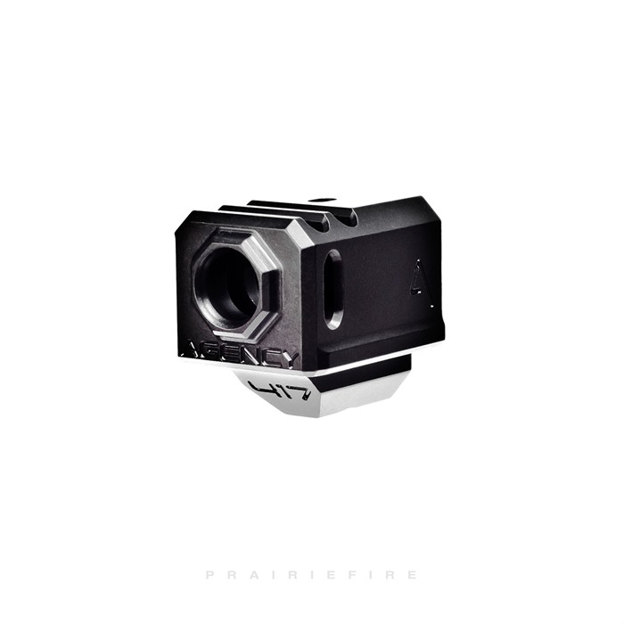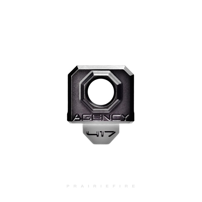 Agency Arms 417 Compensator är speciellt utformad för att ge lättnad från kännbar rekyl. Varje Agency Arms Glock G43 417 Compensator passar alla gängade pipor med en standardgänga på 1/2-28 TPI. Kompensatorns design har två vertikala gasportar och två portar som ventilerar ut åt sidan, vilket minskar både rekyl och mynningens klättring.
