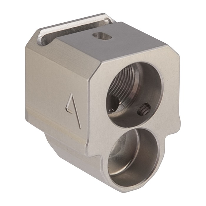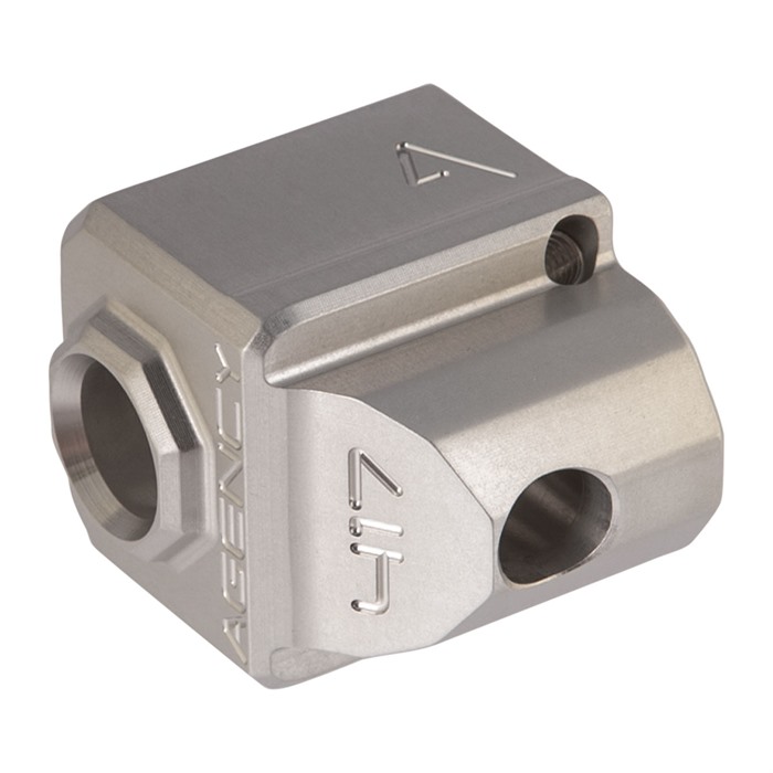 The Agency Arms 417 Compensator is threaded with the standard 1/2x28 thread pitch. It features a single top venting port and it also features a front sight hole. It is designed to utilize the OEM recoil spring assembly and the front sight hole allows you to transfer your existing front sight from your slide to the comp. Compatible with the 17,19 and 34 Includes: Comp 2 Set Screws