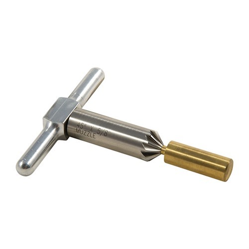 45° MUZZLE/CYLINDER CHAMFERING CUTTER & BRASS PILOT är det perfekta verktyget för att bryta skarpa kanter på både gevär och pistolmynningar. Med detta verktyg kan du också snabba upp cylinderfyllningen på revolvrar.