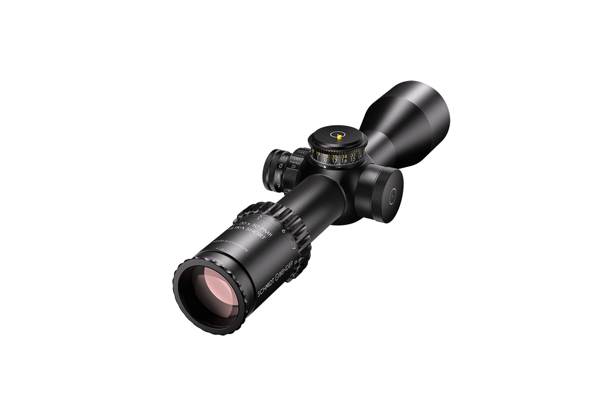 4060537063707 The 3‑20×50 PM II Ultra Short from Schmidt and Bender is a compact yet powerful riflescope engineered for high-performance engagements across medium to long distances. With its 3–20× magnification range and a 50 mm objective lens, it offers outstanding optical clarity and flexibility in a streamlined form factor. Constructed around a robust 34 mm main tube, it maintains a length of approximately 340 mm and weighs around 900 g, striking an excellent balance between size and performance—ideal for mounting on compact platforms without compromising optics. Its field of view spans roughly 13.0–2.1 m at 100 m, providing broad situational awareness at lower magnification and refined detail at the high end. The exit pupil ranges around 11.4–2.5 mm, and the eye relief is approximately 90 mm, supporting comfortable shooting in varied positions while maintaining strong light-gathering even as light fades. Advanced features include first focal plane (FFP) illuminated reticle options, side parallax adjustment (from approx. 25 m to infinity), and a low-profile elevation turret optimized for tactical precision. Key Specifications: Magnification: 3–20× Objective Lens Diameter: 50 mm Main Tube Diameter: 34 mm Field of View: approx. 13.0–2.1 m @100 m Exit Pupil: approx. 11.4–2.5 mm Eye Relief: approx. 90 mm Length: approx. 340 mm Weight: approx. 900 g With precision optics, compact build, and rugged mechanical design, the 3‑20×50 PM II Ultra Short is built for serious shooters who demand premium performance in a versatile package.
