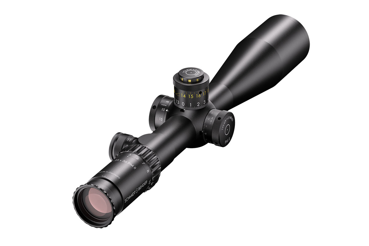 4060537065299 The 5‑25×56 PM II from Schmidt and Bender stands at the pinnacle of variable‑magnification tactical optics, engineered for long‑range precision, outstanding clarity and professional‑level reliability. With a wide 5–25× zoom range and a substantial 56 mm objective lens, it delivers exceptional light‑gathering capability, enabling crisp, bright imagery even at extended distances. Built upon a rugged 34 mm main tube, the scope accommodates large internal adjustment ranges and is designed for demanding use. It features a reticle in the first focal plane (FFP) so that scale and hold‑offs remain accurate at any magnification. The field of view spans approximately 5.3–1.5 m at 100 m, while the exit pupil ranges around 11.0–2.3 mm, and the eye relief remains generous at around 90 mm. The parallax adjustment typically extends from 10 m to infinity, enabling accurate focus from very close ranges through to extreme distances. The turret system is engineered for precision: click values as fine as 0.1 mrad (≈1 cm at 100 m) are available, and a double‑turn elevation turret combined with single‑turn windage allows vast usable correction ranges for wind and elevation. Optical transmission exceeds 90 %, and the construction is nitrogen‑filled, fog‑ and waterproof, ensuring full reliability in all climatic conditions. Key Specifications: Magnification: 5–25× Objective Lens Diameter: 56 mm Main Tube Diameter: 34 mm Field of View: approx. 5.3–1.5 m @100 m Exit Pupil: approx. 11.0–2.3 mm Eye Relief: approx. 90 mm Parallax Adjustment: from ~10 m to infinity Click Value: approx. 0.1 mrad (≈1 cm at 100 m) Optical Transmission: > 90 % Crafted in Germany to the highest standards, the 5‑25×56 PM II is the go‑to choice for military, law‑enforcement and competition shooters who demand absolute clarity, mechanical integrity and extreme flexibility in one optic.