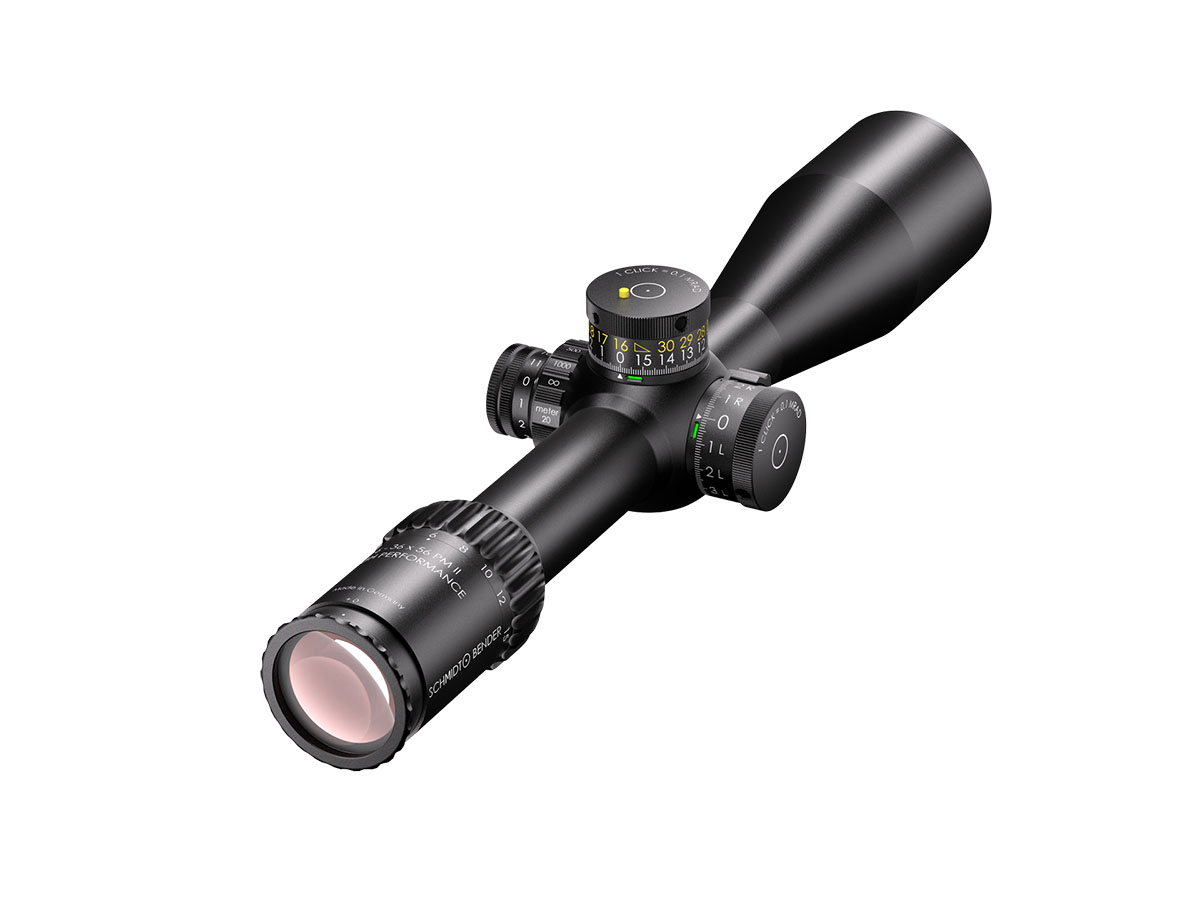 4060537069273 The 6‑36×56 PM II High Performance from Schmidt and Bender is a benchmark optic engineered for serious medium‑ to extreme‑long‑range shooting. With its expansive 6–36× magnification range and a generous 56 mm objective lens, it delivers exceptional clarity, reach and flexibility for demanding applications. Crafted on a robust 34 mm main tube, the scope is compact in length (approx. 390 mm) and relatively light for its class (around 940 g), yet built with the ruggedness and precision befitting the PM II series. The first‑focal‑plane (FFP) reticle ensures accurate hold‑overs, ranging and subtensions at every magnification level. With a transmission rating of well over 90 %, the optical system offers bright, high‑resolution imagery critical for target recognition at extended distances. Its field of view spans about 7.3–1.3 m @100 m, and the exit pupil ranges from approximately 8.3–1.6 mm, providing both wide situational awareness at lower magnification and finely‑detailed views at higher zoom levels. The eye relief is approximately 90 mm, ensuring comfortable viewing across shooting positions. The turret system features ultra‑fine 0.1 mrad click values, and the internal adjustment ranges exceed 40 mrad, giving the shooter a massive envelope for elevation and windage correction. The scope’s innovative “LPI” (Illuminated‑Parallax‑Integrated) system enhances usability, including left‑hand shooter compatibility and more mounting flexibility. Key Specifications: Magnification: 6–36× Objective Lens Diameter: 56 mm Main Tube Diameter: 34 mm Field of View: approx. 7.3–1.3 m @100 m Exit Pupil: approx. 8.3–1.6 mm Eye Relief: approx. 90 mm Transmission: >90% Click Value: ~0.1 mrad Length: approx. 390 mm Weight: approx. 940 g Designed and manufactured in Germany with highest precision, the 6‑36×56 PM II High Performance is ideal for professionals, competition marksmen or hunters seeking top‑tier optical clarity, mechanical integrity and flexibility across distances that demand elite performance.