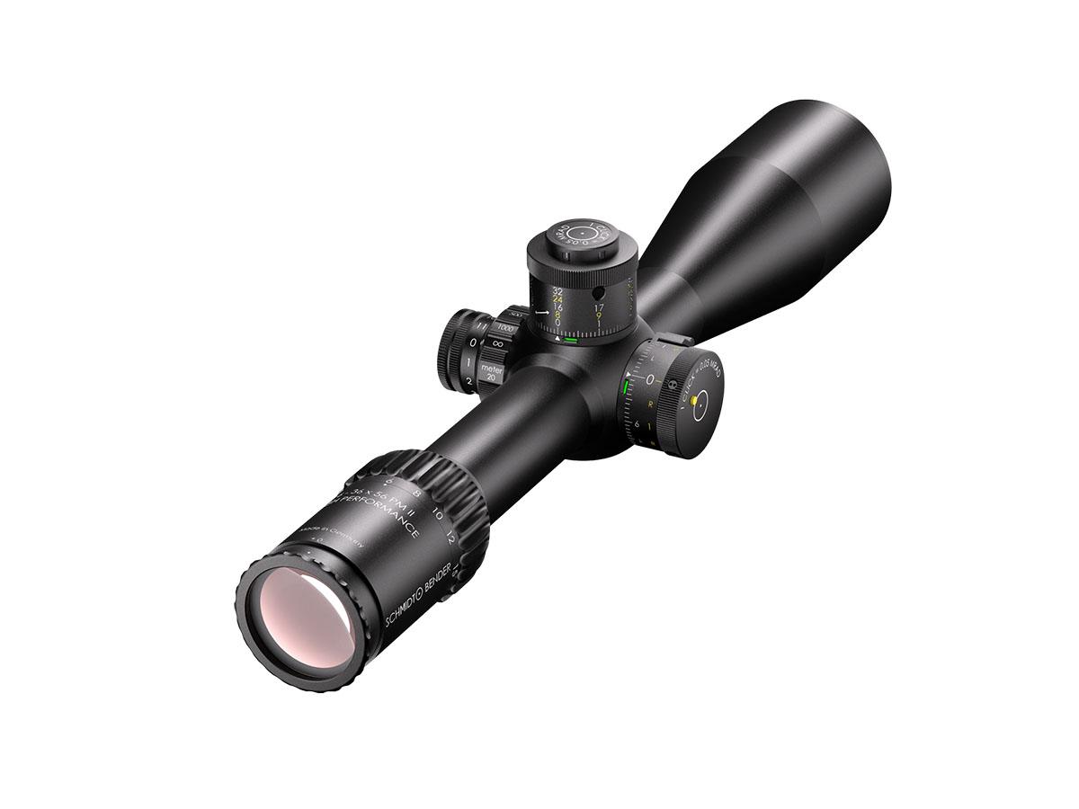 4060537065961 The 6‑36×56 PM II High Performance from Schmidt and Bender is a benchmark optic engineered for serious medium‑ to extreme‑long‑range shooting. With its expansive 6–36× magnification range and a generous 56 mm objective lens, it delivers exceptional clarity, reach and flexibility for demanding applications. Crafted on a robust 34 mm main tube, the scope is compact in length (approx. 390 mm) and relatively light for its class (around 940 g), yet built with the ruggedness and precision befitting the PM II series. The first‑focal‑plane (FFP) reticle ensures accurate hold‑overs, ranging and subtensions at every magnification level. With a transmission rating of well over 90 %, the optical system offers bright, high‑resolution imagery critical for target recognition at extended distances. Its field of view spans about 7.3–1.3 m @100 m, and the exit pupil ranges from approximately 8.3–1.6 mm, providing both wide situational awareness at lower magnification and finely‑detailed views at higher zoom levels. The eye relief is approximately 90 mm, ensuring comfortable viewing across shooting positions. The turret system features ultra‑fine 0.1 mrad click values, and the internal adjustment ranges exceed 40 mrad, giving the shooter a massive envelope for elevation and windage correction. The scope’s innovative “LPI” (Illuminated‑Parallax‑Integrated) system enhances usability, including left‑hand shooter compatibility and more mounting flexibility. Key Specifications: Magnification: 6–36× Objective Lens Diameter: 56 mm Main Tube Diameter: 34 mm Field of View: approx. 7.3–1.3 m @100 m Exit Pupil: approx. 8.3–1.6 mm Eye Relief: approx. 90 mm Transmission: >90% Click Value: ~0.1 mrad Length: approx. 390 mm Weight: approx. 940 g Designed and manufactured in Germany with highest precision, the 6‑36×56 PM II High Performance is ideal for professionals, competition marksmen or hunters seeking top‑tier optical clarity, mechanical integrity and flexibility across distances that demand elite performance.