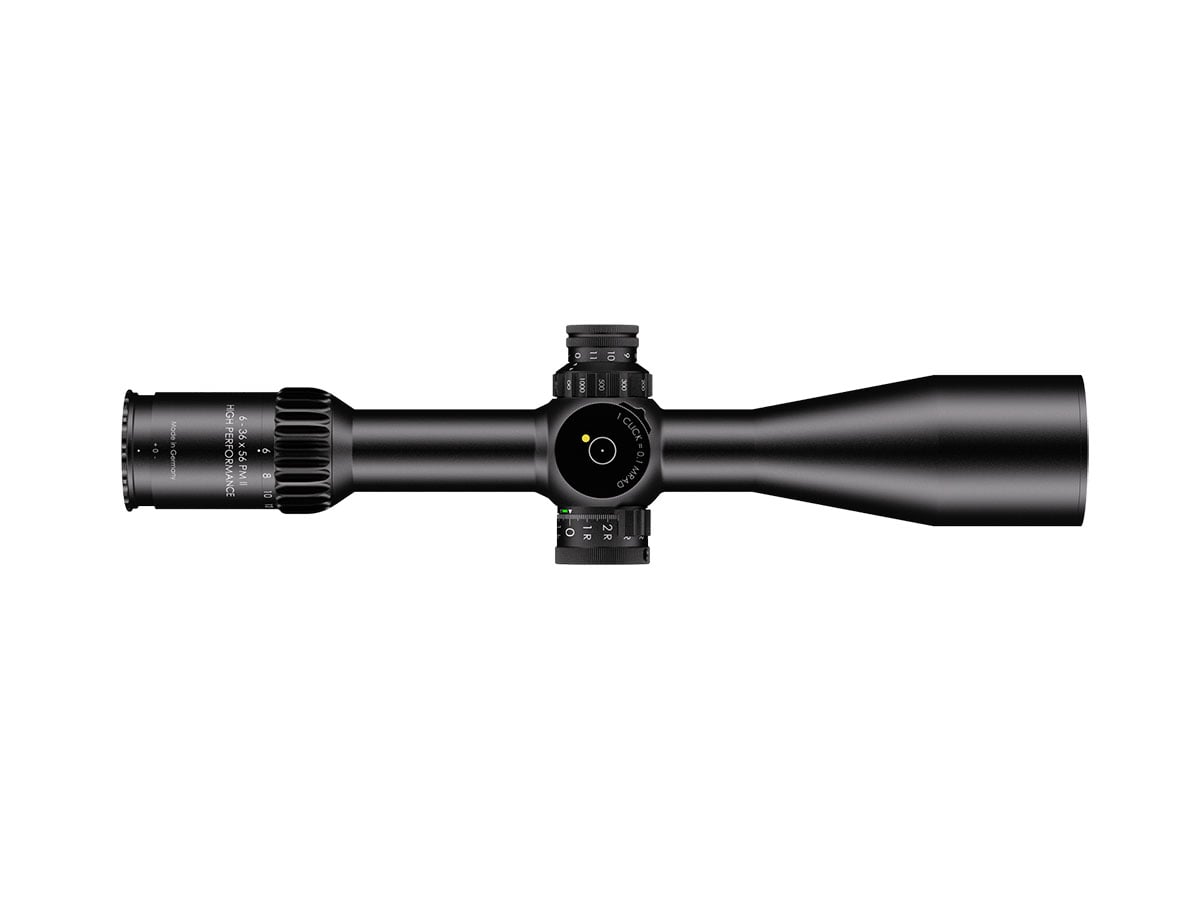 4060537069723 The 6‑36×56 PM II High Performance from Schmidt and Bender is a benchmark optic engineered for serious medium‑ to extreme‑long‑range shooting. With its expansive 6–36× magnification range and a generous 56 mm objective lens, it delivers exceptional clarity, reach and flexibility for demanding applications. Crafted on a robust 34 mm main tube, the scope is compact in length (approx. 390 mm) and relatively light for its class (around 940 g), yet built with the ruggedness and precision befitting the PM II series. The first‑focal‑plane (FFP) reticle ensures accurate hold‑overs, ranging and subtensions at every magnification level. With a transmission rating of well over 90 %, the optical system offers bright, high‑resolution imagery critical for target recognition at extended distances. Its field of view spans about 7.3–1.3 m @100 m, and the exit pupil ranges from approximately 8.3–1.6 mm, providing both wide situational awareness at lower magnification and finely‑detailed views at higher zoom levels. The eye relief is approximately 90 mm, ensuring comfortable viewing across shooting positions. The turret system features ultra‑fine 0.1 mrad click values, and the internal adjustment ranges exceed 40 mrad, giving the shooter a massive envelope for elevation and windage correction. The scope’s innovative “LPI” (Illuminated‑Parallax‑Integrated) system enhances usability, including left‑hand shooter compatibility and more mounting flexibility. Key Specifications: Magnification: 6–36× Objective Lens Diameter: 56 mm Main Tube Diameter: 34 mm Field of View: approx. 7.3–1.3 m @100 m Exit Pupil: approx. 8.3–1.6 mm Eye Relief: approx. 90 mm Transmission: >90% Click Value: ~0.1 mrad Length: approx. 390 mm Weight: approx. 940 g Designed and manufactured in Germany with highest precision, the 6‑36×56 PM II High Performance is ideal for professionals, competition marksmen or hunters seeking top‑tier optical clarity, mechanical integrity and flexibility across distances that demand elite performance.
