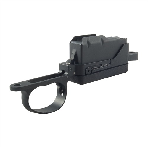 Add all the convenience of drop-free, box magazine to your favorite Remington 700 BDL. Spring-loaded finger latch inside the triggerguard drops the box magazine free, speeds loading and unloading. Made from durable stainless steel and finished with bake-on, matte, black Teflon® coating that's self-lubricating and resists scratches and wear. Updated version have positive locking springs on the bottom of both sides of the floor plate (holds the magazine box securely in place without the rubber o-ring), a polymer boot on bottom of box (easier to remove), and a guide slot and larger rear catch on back of box (ensures proper latch).
