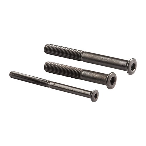 De precisionstillverkade, värmebehandlade skruvarna ger extra räckvidd när du sätter in Remington-vapnets mekanik i syntetiska eller trästockar med tjockare tvärsnittsdiameter. Dessa skruvar är cirka .250" längre än fabriks skruvarna, vilket ger större flexibilitet vid inbäddning.