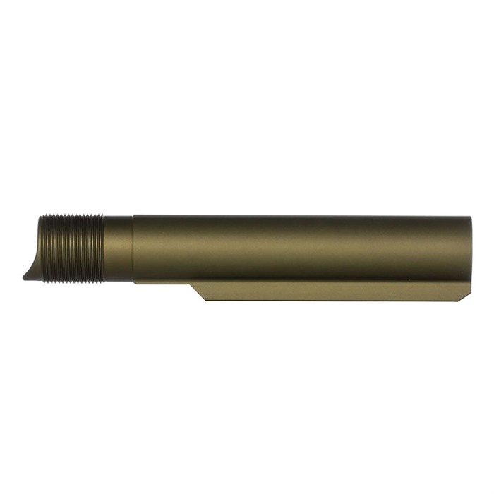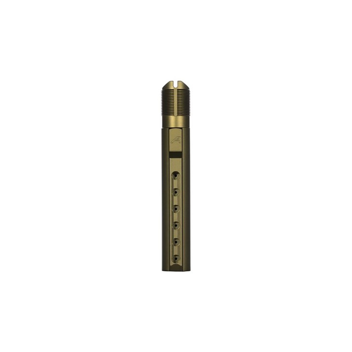 - Ramped Tube Design: Denna design möjliggör enklare installation av standard carbine buttstocks. Tuben garanteras att ha rätt gängdjup, så att din kolv inte fastnar på exponerade gängor när den är ihopskjuten.
