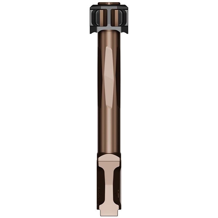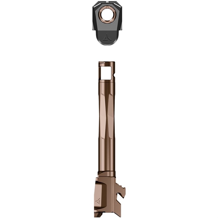 AFTERBURNER + RAMJET FOR GLOCK 48 The Radian® AFTERBURNER™ + RAMJET™ combo provide unprecedented recoil reduction and match grade accuracy in a concealed carry package. The threadless barrel design allows for effortless install/removal for cleaning, while LEGAL FOR SALE IN ALL 50 STATES*. The AFTERBURNER™ compensator is machined from hardened stainless steel and the RAMJET™ barrel from hardened 416R SS; both are enhanced with a Radianite™ coating. This combination achieves low friction, high hardness, and high corrosion resistance, making overall durability and erosion from muzzle blast a non-issue. Angled front faces on the AFTERBURNER aid in holstering. The INTRA-LOK® mounting system uses the taper lock principle; a tapered locking screw interfaces with an angled V-groove on the underside of the barrel. This perfectly times the compensator as it locks down onto the upper barrel profile on the muzzle end of the barrel. INTRA-LOK® allows the user to simply slide the compensator over the barrel, insert and tighten the locking screw, making for a simple and repeatable installation process. This system allows the user to easily remove the barrel from the slide for cleaning. DISCLAIMER: “GLOCK” is a federally registered trademark of GLOCK, Inc. and is one of many trademarks owned by GLOCK, Inc. or GLOCK Ges.m.b.H. Neither Brownells nor this site are affiliated in any manner with, or otherwise endorsed by, GLOCK, Inc. or GLOCK Ges.m.b.H. The use of “GLOCK” on this page is merely to advertise the sale of GLOCK pistols, parts, or components. For genuine GLOCK, Inc. and GLOCK Ges.m.b.H. products and parts visit www.glock.com.