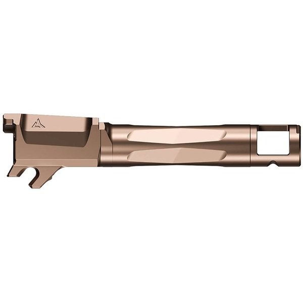 The Radian® AFTERBURNER™ + RAMJET™ combo provide unprecedented recoil reduction and match grade accuracy in a concealed carry package. The threadless barrel design allows for effortless install/removal for cleaning, while LEGAL FOR SALE IN ALL 50 STATES*. The AFTERBURNER™ compensator is machined from hardened stainless steel and the RAMJETTM barrel from hardened 416R SS; both are enhanced with a Radianite Black coating. This combination achieves low friction, high hardness, and high corrosion resistance, making overall durability and erosion from muzzle blast a non-issue. Angled front faces on the AFTERBURNER™ aid in holstering. The INTRA-LOK® mounting system uses the taper lock principle; a tapered locking screw interfaces with an angled V-groove on the underside of the barrel. This perfectly times the compensator as it locks down onto the upper barrel profile on the muzzle end of the barrel. INTRA-LOK® allows the user to simply slide the compensator over the barrel, insert and tighten the locking screw, making for a simple and repeatable installation process. This system allows the user to easily remove the barrel from the slide for cleaning. FEATURES AFTERBURNER™ Hardened SS RAMJET™ Hardened 416R SS atch Grade Barrel Gas Sealing Chamber Loaded Chamber Indicator