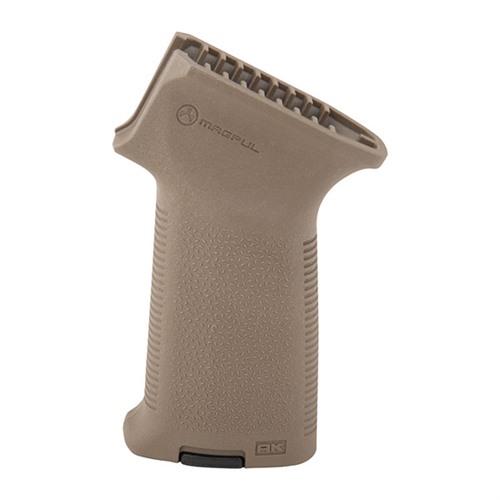 MOE AK Grip är en drop-in uppgradering för AK-mönstrade pistolgrepp, designad för att förbättra ergonomin och ge bättre kontroll över vapnet.