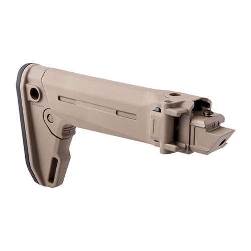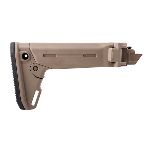 The Magpul Zhukov-S Stock is a no-compromise folding stock for the modern AK. The Zhukov-S Stock casts aside traditional AK stock shortcomings and offers a folding, collapsible stock with QD sling mounts, modular Cheek Risers (sold separately), 5-position telescoping and a shock-absorbing rubber butt-pad for superior traction. The Zhukov has right-side folding for compatibility with side-mounted optics. Designed to fit most common stamped AK receivers without modification via a unique wedge block, the durable injection molded polymer Zhukov-S Stock redefines the human interface with the AK platform. Does not fit milled or Yugo AK's.
