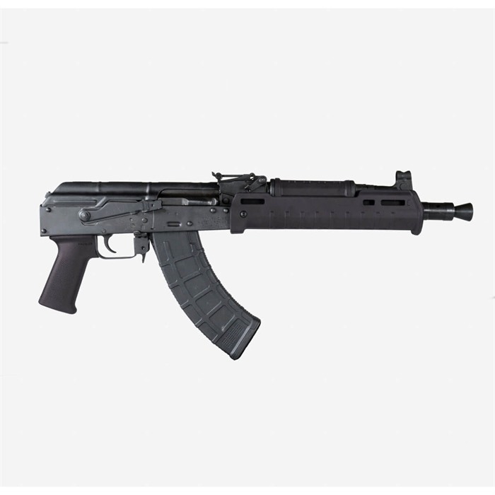The Zhukov-U Hand Guard is a shortened version of Magpul's original Zhukov hand guard for use on short-barreled AK rifles and pistols. Like the original, the Zhukhov-U Hand Guard replaces the small, skinny wood factory guard to give you a large, comfortable gripping surface thats compatible with modern shooting techniques. An internal aluminum chassis clamps directly to the barrel for a solid flex-free installation and excellent barrel heat dispersion, while the comfortable injection molded exterior gives superior ergonomics. The Zhukov-U Hand Guard is compatible with the Ultimak gas tube rail for optics. It also allows you to retain use of the military-issue cleaning rod (unlike the original Zhukov). 1.5" shorter than the standard Zhukov hand guard Fits stamped and milled AK-47 / AK-74 rifles with standard-length gas systems Optimized for short-barreled rifles such as AK-102, AK-104 & AK-105 M-LOK slots for accessory attachment at the 3, 6, and 9 oclock positions Vented gas tube cover Counts as one US compliance part under 18 U.S.C. section 922(r) Installation requires permanent removal of the factory handguard retaining cap and forward sling mount The Zhukov-U Hand Guard can be mounted on rifles with full-length barrels, if you prefer a smaller hand guard. Due to the wide range of tolerances typical of AK-pattern rifles, minor additional fitting may be required.