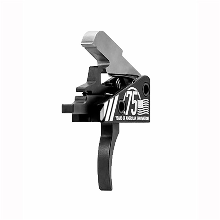 Timney Triggers firar 75 år av amerikansk innovation med detta begränsade utgåvan av 75-årsjubileumstrigger. Denna specialutgåva har ett svart hölje med en anpassad laserskuren design.