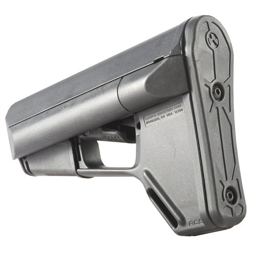 Den anpassningsbara Carbine/Storage (ACS) stocken är en direkt ersättning för den standard USGI M4 kollapsibla stocken och ger den taktiska operatören extra lagringsalternativ, en säker och bekväm kindstöd, samt en avancerad dubbel-låsande spak.