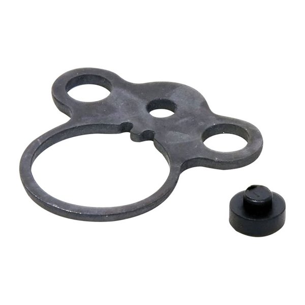 Denna ambidextrous Dual Loop Sling Attachment Plate är tillverkad av kolstål och har en svart oxidbehandling. Designen av denna sling-fäste gör att användare kan fästa en krok-liknande fästanordning genom de integrerade öglorna i plattan. Ögledesignen gör det möjligt för användare att bära sitt vapen på antingen vänster eller höger sida.