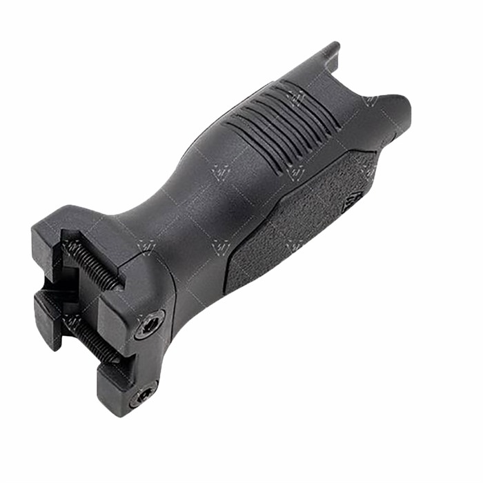 The Strike Industries Angled Vertical Grip with Cable Management (Picatinny) is engineered like no other grip on the market. The grip angle sits on the handguard at 86 degrees. The patent pending SI Cable Management System® (CMS) function enables you to organize and store excess wire from your weapon light or any other cabled accessories. Instead of tucking wire anywhere you can and using cable ties or tape to hold it down, the SI CMS will offer you a place to route and/or contain loose wire inside the grip cavity. The cuts at the top middle of the grip allow for easier pressure switch attachment. On both the Short and Long version there has an added built-in stability feature when you place the L-shaped bottom onto a table edge/corner or as a barricade stop, giving you another way to get back on target faster downrange. The Short version is a low-profile form helps to minimize snags. The forward angle provides more of a natural wrist angle and increased rigidity of forearm. Designed with textured palm and finger areas with flat sides for positive handling and easier manipulation of the firearm. Made from durable and lightweight polymer compatible with 1913 Picatinny rails, the Strike Industries Angled Vertical Grip with Cable Management gives the shooter control while handling or firing the weapon, added stability with table/edge corner or as a barricade stop and an innovative way to ensure total cable management. No messy wires.