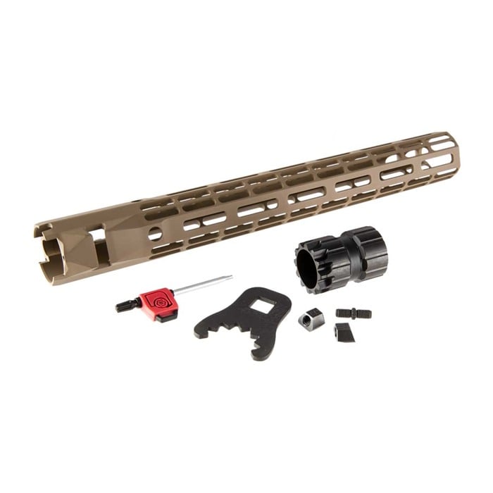 The ATLAS S-ONE is the newest addition to the Aero Precision Handguard lineup. Machined from 6061-T6 Aluminum, the S-ONE line of handguards are designed with size and weight in mind, providing the perfect handguard for your lightweight build. Aero's proprietary ATLAS attachment system is a durable and dependable mounting platform, maintaining a slim profile while still providing the strength and stability customers have grown to love from Aero Precision handguards. Actual Handguard Lengths: 7.3", 9.3", 10.3", 12.7", 15" -- Aero Precision rail lengths measure from end to end. This is the point of contact at the receiver to the end of the last picatinny slot at the muzzle. Available in M-LOK profiles with 7.3", 9.3", 10.3", 12.7" and 14.94 (Actual Length 15") options. ATLAS The new Aero Taper Lock Attachment System (ATLAS) is both functional and aesthetically pleasing. It features 2 mirrored tapered locking nuts that provide evenly distributed clamping pressure across a custom engineered barrel nut with use of a turnbuckle screw. A ratcheting detent further secures the design while providing positive registration during installation. By design, the even pressure of the ATLAS system avoids distortion of the handguard often seen with current applications during installation. All hardware mounting parts are included with the purchase of an ATLAS Handguard. LIGHTWEIGHT BY DESIGN M-LOK Handguard Weights: 7.3" - 4.86 oz / 9.3" - 5.47 oz / 10.3" - 6.0 oz / 12.7" - 7.00 oz / 15" - 7.95 oz Mounting Hardware Weight: 1.9 oz (same across all S-ONE Handguard options) FEATURES: Front and rear picatinny rail Eliminated center of top rail for weight reduction Indexing grooves in 12:00 position for positive grip control Quick disconnect sling socket at the 3, 6 and 9 o'clock positions Compatible with low profile gas blocks 1.3" Inside diameter 1.5" Outside diameter Compatible with mil-spec AR15 upper receivers and barrels NOT Compatible with M4E1 Enhanced Upper Receivers ATLAS Handguards are designed to match seamlessly with Aero's M4E1 Threaded Upper Receivers. Additionally, they are compatible with any Mil-Spec AR-15 upper receivers as well. However, they may not be compatible with billet upper receivers due to indexing tabs. Save when you buy them as a combo. Please note: The ATLAS Handguards are NOT compatible with Aero's M4E1 Enhanced Upper Receiver.
