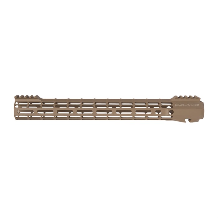 The ATLAS S-ONE is the newest addition to the Aero Precision Handguard lineup. Machined from 6061-T6 Aluminum, the S-ONE line of handguards are designed with size and weight in mind, providing the perfect handguard for your lightweight build. Aero's proprietary ATLAS attachment system is a durable and dependable mounting platform, maintaining a slim profile while still providing the strength and stability customers have grown to love from Aero Precision handguards. Actual Handguard Lengths: 7.3", 9.3", 10.3", 12.7", 15" -- Aero Precision rail lengths measure from end to end. This is the point of contact at the receiver to the end of the last picatinny slot at the muzzle. Available in M-LOK profiles with 7.3", 9.3", 10.3", 12.7" and 14.94 (Actual Length 15") options. ATLAS The new Aero Taper Lock Attachment System (ATLAS) is both functional and aesthetically pleasing. It features 2 mirrored tapered locking nuts that provide evenly distributed clamping pressure across a custom engineered barrel nut with use of a turnbuckle screw. A ratcheting detent further secures the design while providing positive registration during installation. By design, the even pressure of the ATLAS system avoids distortion of the handguard often seen with current applications during installation. All hardware mounting parts are included with the purchase of an ATLAS Handguard. LIGHTWEIGHT BY DESIGN M-LOK Handguard Weights: 7.3" - 4.86 oz / 9.3" - 5.47 oz / 10.3" - 6.0 oz / 12.7" - 7.00 oz / 15" - 7.95 oz Mounting Hardware Weight: 1.9 oz (same across all S-ONE Handguard options) FEATURES: Front and rear picatinny rail Eliminated center of top rail for weight reduction Indexing grooves in 12:00 position for positive grip control Quick disconnect sling socket at the 3, 6 and 9 o'clock positions Compatible with low profile gas blocks 1.3" Inside diameter 1.5" Outside diameter Compatible with mil-spec AR15 upper receivers and barrels NOT Compatible with M4E1 Enhanced Upper Receivers ATLAS Handguards are designed to match seamlessly with Aero's M4E1 Threaded Upper Receivers. Additionally, they are compatible with any Mil-Spec AR-15 upper receivers as well. However, they may not be compatible with billet upper receivers due to indexing tabs. Save when you buy them as a combo. Please note: The ATLAS Handguards are NOT compatible with Aero's M4E1 Enhanced Upper Receiver.