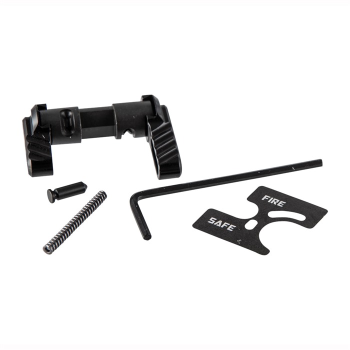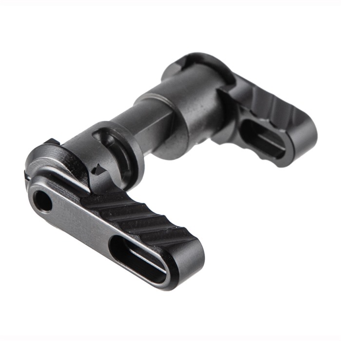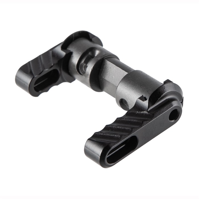 Denna professionella, inga nonsens, duty grade semi-auto säkerhetsväljare är den perfekta uppgraderingen för din AR-15. Den levereras standard med en reversibel säkerhetscenter med 0°-90° och 0°-60° kortkastalternativ. De standard och korta säkerhetsreglagen är helt utbytbara och modulära för att passa vänster- eller högerhänta skyttar.