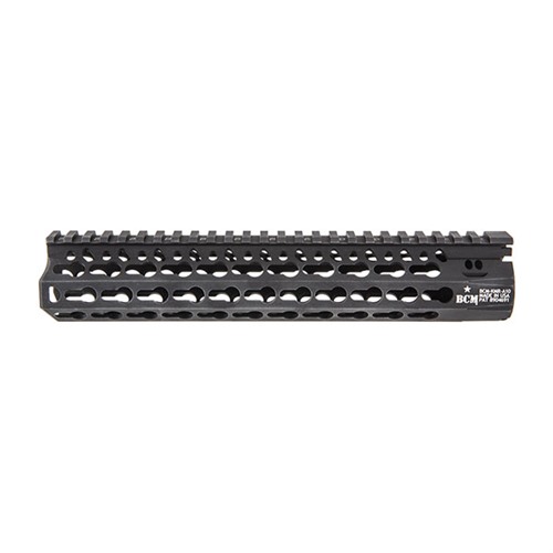 Bravo Company’s machined aluminum BCM KMR Alpha Handguard free-floats the barrel for better accuracy potential while it provides plenty of KeyMod™ slots for add-on rail segments and accessories. Built-in Picatinny top rail is supplemented by KeyMod™ slots at - and between - the 3, 6 and 9 o'clock positions. Fits standard AR-15 upper receiver Lightweight yet robust aluminum construction, reinforced with non-reflective hardcoat anodized finish 1.5" O.D., measured flat-to-flat, 1.3" I.D. Proprietary barrel nut and mounting hardware INCLUDED Comes with one KeyMod rail segment - more rail segments sold separately The Bravo Company BCM KMR Alpha Handguard flares slightly at the front into a special, flat-bottomed shape that's comfortable to hold, and provides stable support when shooting off barricade or obstacle. Brownells Gun Tech™ Note: The KeyMod™ accessory-mounting system was developed by Eric Kincel, who is now the director of Bravo Company’s product development team. It is designed to work in parallel with the existing MIL-STD 1913 Picatinny rail systems, often providing greater versatility, modularity, and ease of configuring accessories than Picatinny rails alone.